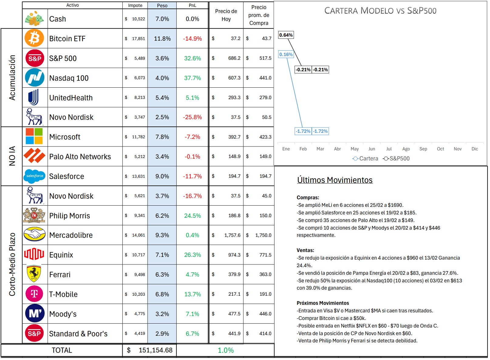 Se actualiza la cartera modelo a fecha del viernes 27/02/2026.