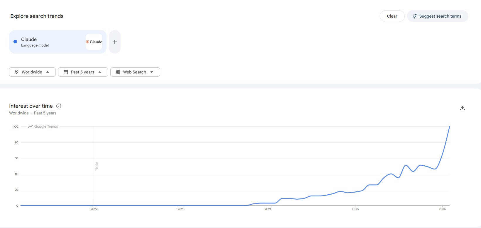 Analizando Google Trends, se puede ver que es el caso de Claude, la IA de Anthropic.